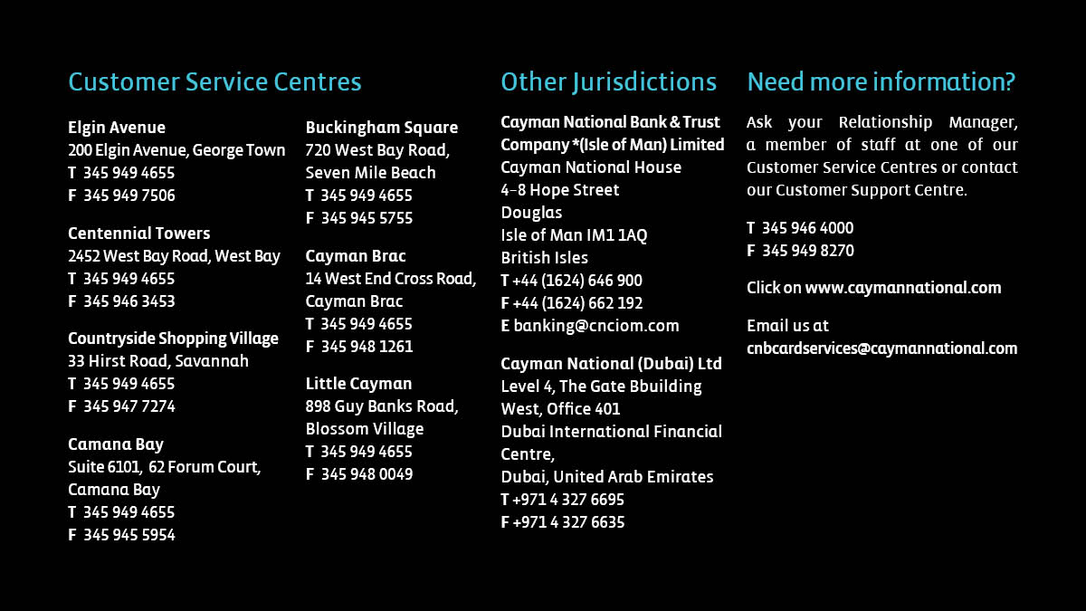 Browse the brochure to the right to learn more about the Visa Infinite product offering from Cayman National.